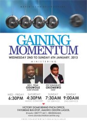 Hello my very dear people. Happy 2013. May the BEST in the land TACKLE us this 2013 in Jesus name, amen I didn’t go AWOL ooo. I have a really cool story to defend my absence from blogging this year. Ready? I had this amazing program in church, GAINING MOMENTUM… We usually start our year […]