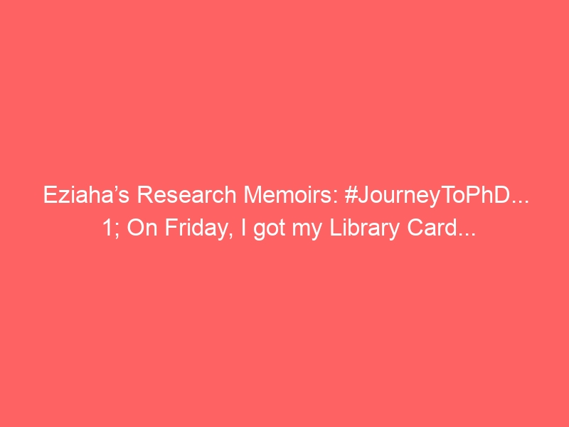 Eziaha’s Research Memoirs: #JourneyToPhD… Part 1; On Friday, I got my Library Card…
